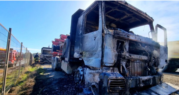 Segundo informou um trabalhador da empresa à polícia, esta madrugada um grupo de encapuzados entrou no terreno e jogou combustível em pelo menos dez veículos, entre máquinas e caminhões, para depois atear fogo.